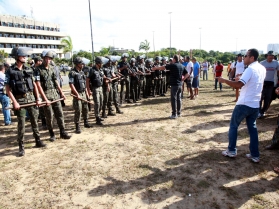| Cena da praça de "guerra" em frente a Assembleia Legislativa da Bahia |